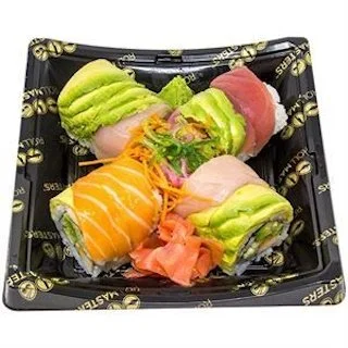 salmon, avocado, cucumber topped w/ peppered tuna, cured dry rub salmon, avocado, diced tofu confit